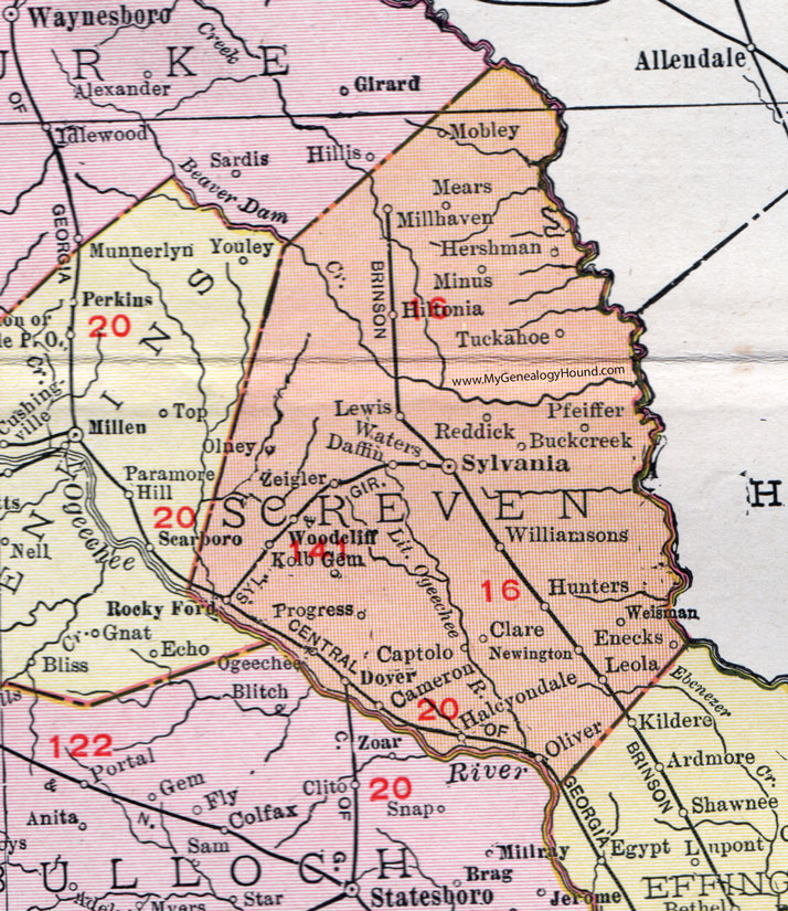 These vintage Georgia maps are provided to help locate the numerous small settlements within a county and to determine the historic boundaries of a county. These maps also show the location of railroad lines and major waterways which were important routes of travel in early days.