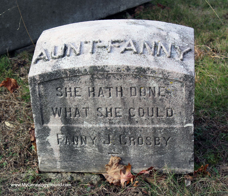 Bridgeport, Connecticut, Fanny Crosby, Tombstone and Grave, photos