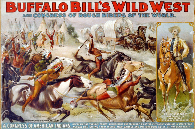 In 1883, Cody assembled an array of wild west figures, American Indians, cowboys, rough riders and others to began tours of the United States and Canada. This became know as Buffalo Bill's Wild West and Congress of Rough Riders of the World. Among the celebrities included were various Native American Indian Chiefs and warriors, Annie Oakley as a amazing rifle shot, and at times, Calamity Jane as a storyteller. Between 1887 and 1906, this traveling show made eight different tours of England and Europe. These events were wildly successful and were attended many heads of state including Queen Victoria.