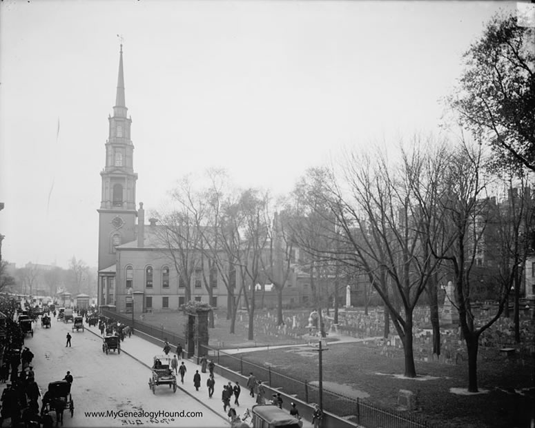 Boston, Massachusetts, Park Street Church and Granary Burying Ground, Cemetery, 1904 historic photo