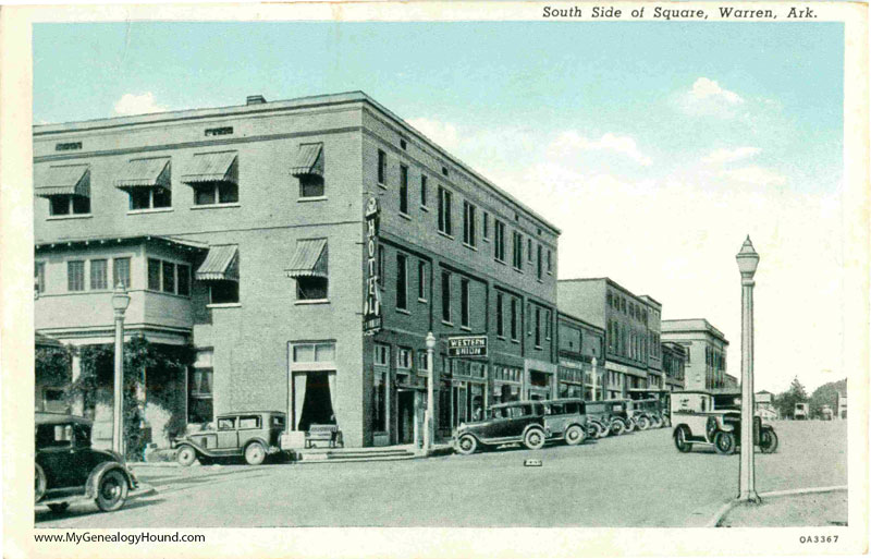 A vintage postcard of the South Side of Square, Warren, Arkansas.