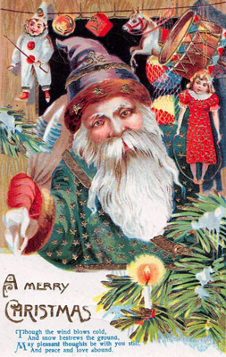 In times past, it was traditional to send colorful postcards in celebration of the various holidays. This group of vintage Christmas postcards dates from the early 1900's.