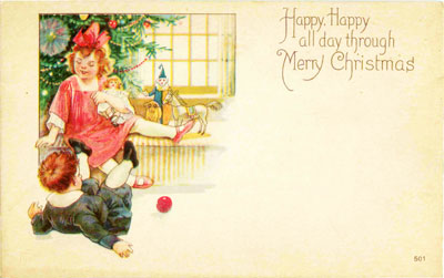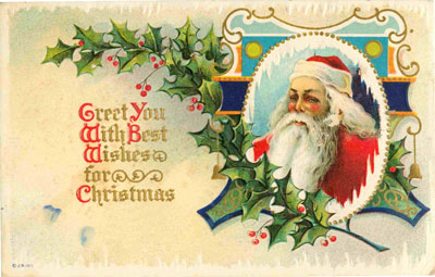 In times past, it was traditional to send colorful postcards in celebration of the various holidays. This group of vintage Christmas postcards dates from the early 1900's.