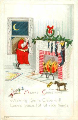 In times past, it was traditional to send colorful postcards in celebration of the various holidays. This group of vintage Christmas postcards dates from the early 1900's.