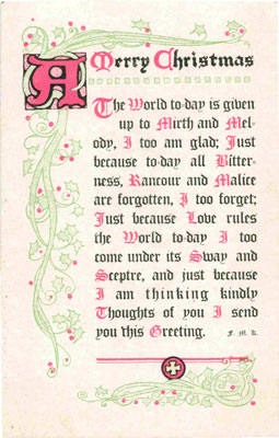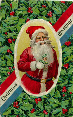 In times past, it was traditional to send colorful postcards in celebration of the various holidays. This group of vintage Christmas postcards dates from the early 1900's.
