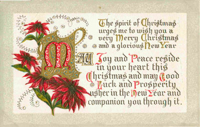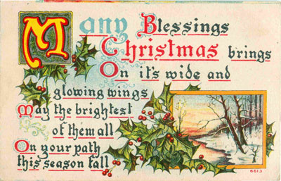 In times past, it was traditional to send colorful postcards in celebration of the various holidays. This group of vintage Christmas postcards dates from the early 1900's.
