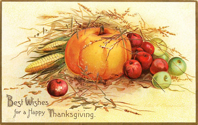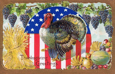 In times past, it was traditional to send colorful postcards in celebration of the various holidays. This group of vintage Thanksgiving Day postcards dates from the early 1900's.